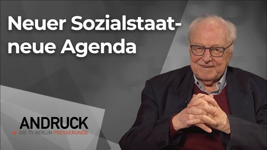 Arbeitsministerin Bärbel Bas legte diese Woche den Bericht der „Sozialstaatskommission“ vor. Kernsatz: Verwaltung vereinfachen, Leistungen bündeln und doch beibehalten. Ist das die nötige „Revolution“, um den Sozialstaat leistungsstärker zu machen? 26 „Empfehlungen“ hat die Kommission aufgeschrieben. Wie tauglich sind sie? Darüber diskutiert tv.berlin Moderator Dr. Peter Brinkmann mit Elmar Schütze (Berliner Zeitung) im Pressetalk ANDRUCK auf den Sendern der Berliner Godd Media Gruppe, die da sind tv.berlin, Hamburg1, TV Brandenburg und Future TV in Baden – Württemberg am Sonntag 1..2. Um 12 Uhr (tv.berlin) und Hamburg1 um 17.30 Uhr. Live www.tvb.de und www.hamburg1.de